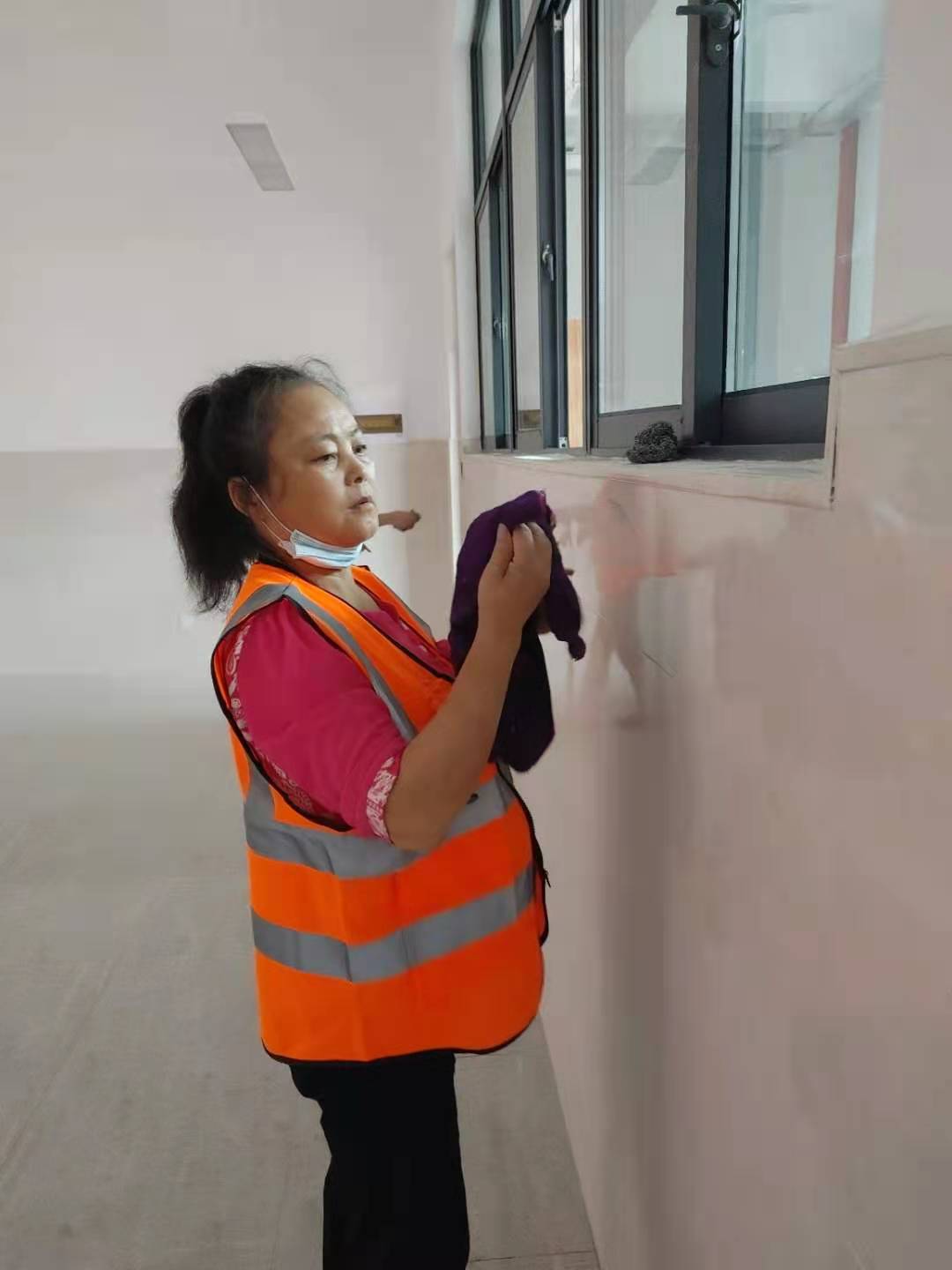 “因为开学时间临近,而校内保洁开荒工作任务量较大,为了如期完成任务,给师生营造良好的学习生活环境,我们每天投入近百名工作人员到学校进行保洁工作。”武汉青年城物业公司工作人员龚浩介绍。“每天下午4点,我们会对保洁工作进行验收,对于不合格的部分用不干胶标记,再通知相关人员马上整改。”