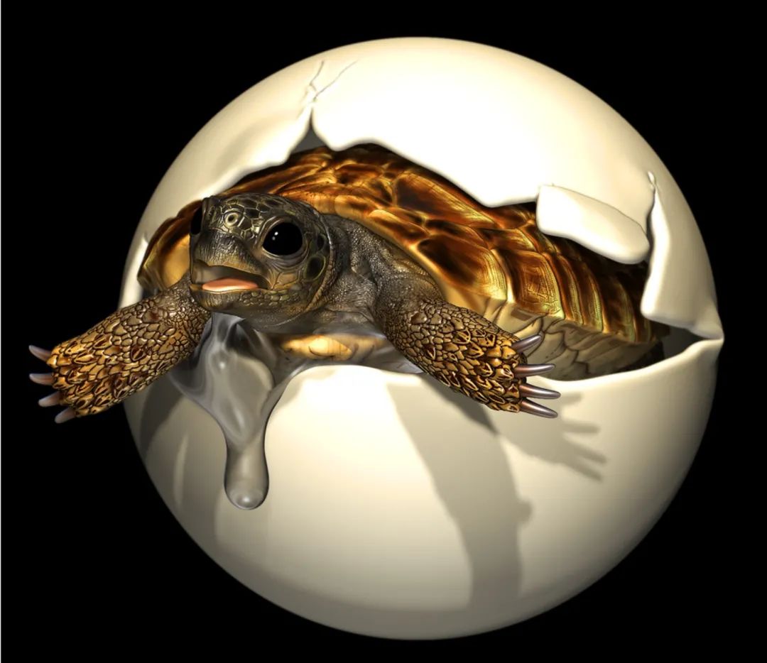 破壳中的南阳豫龟(南雄龟科)想象图(Masato Mattori绘制)。