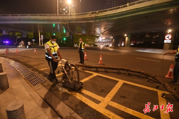 航空路一层转盘的水马于20日晚10时许已拆除,进入试运行阶段。武汉市交管局负责人和硚口交通大队负责人在现场持续观测车流量,对转盘信号灯配时进行了多次微调。