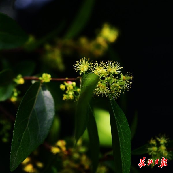 8月20日,沙湖公园的柞木花开正盛,淡黄色的雄花成簇成团。