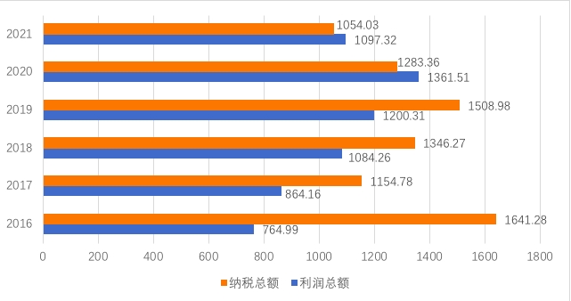 2016-2021武汉企业100强利润总额和纳税总额情况。