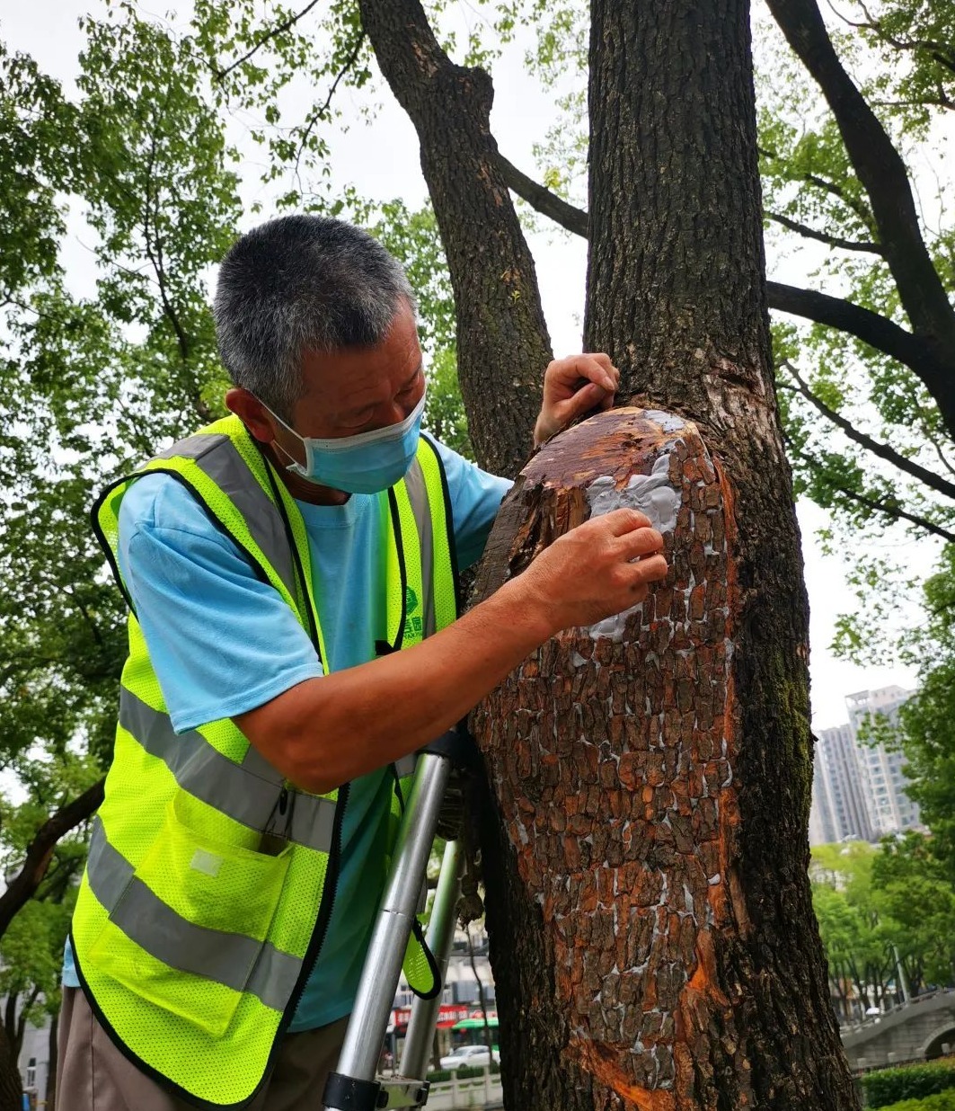 近日,园林和林业部门采用人工植皮等树木修复技术,为武汉道路、公园等绿地因事故车辆撞伤、刮大风断枝撕裂、强烈的西晒晒“炸”导致树干树皮受损的多株树木进行“手术”治疗,使它们恢复了往日的颜值。