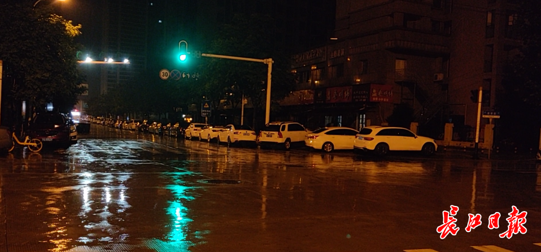 23日深夜,武汉突降暴雨,路上不少车辆仍在赶路。长江日报记者许魏巍 摄