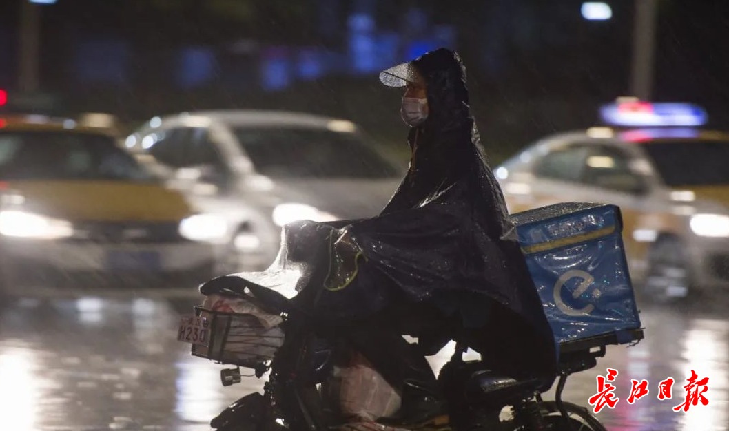 午夜时分,市民在雨中。长江日报记者胡冬冬 摄