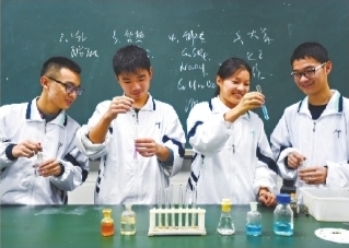 学生们在化学实验室里做实验 许魏巍 摄