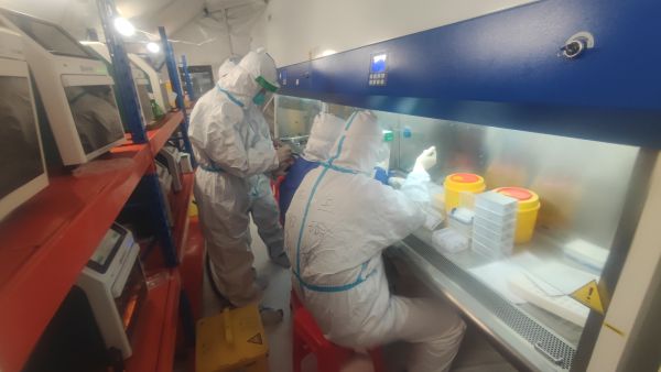 同济天佑医院援吉核酸检测队员们正在紧张工作中。