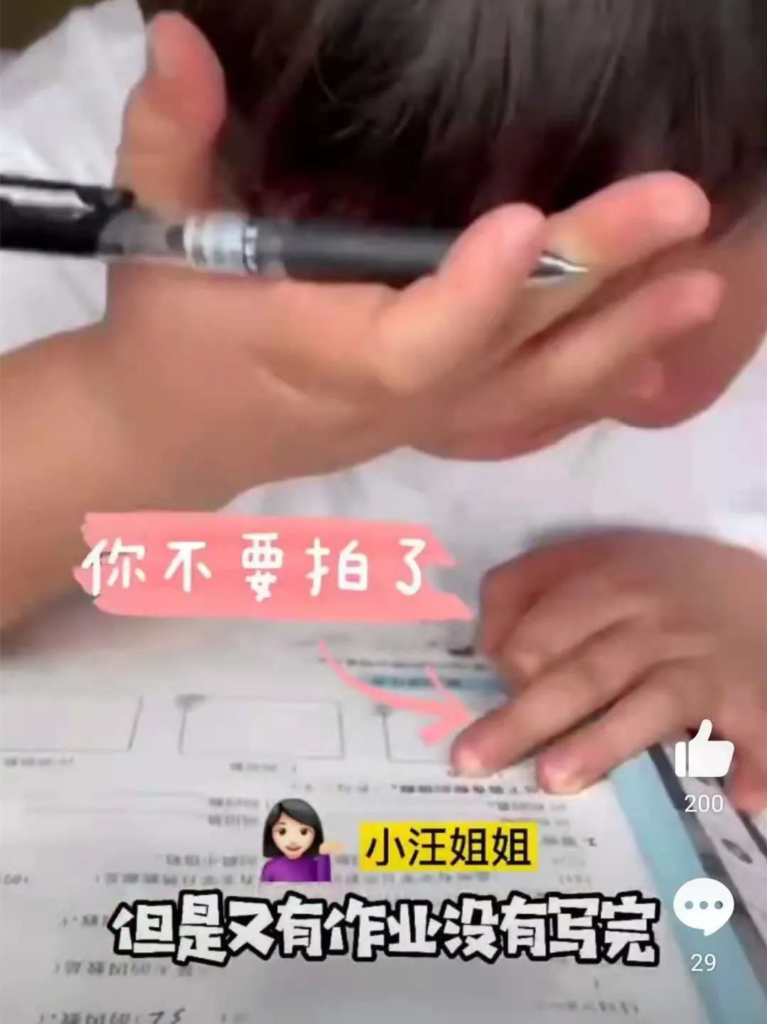 临近开学,又到了狂赶暑假作业的时候。近日,重庆一位叫小汪的小朋友赶作业的视频,让网友都乐了。视频中,小汪一边擦眼泪一边狂写,还不时大喊“奥利给”为自己加油,这一幕被姐姐拍了下来。