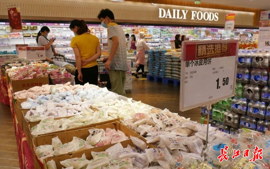 武汉商超已经营造起中秋节的氛围,各式各样的月饼摆满了货柜。今年月饼价格十分亲民,按个销售不到两元一个,盒装月饼价格也只十元左右,吸引了不少市民购买月饼尝鲜,提前感受中秋节。