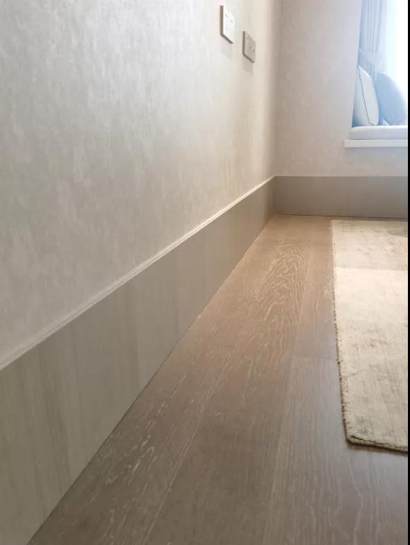 常规踢脚线,高度约10公分,这里踢脚线的高度足足有28公分,保持美观的同时也更方便清洁