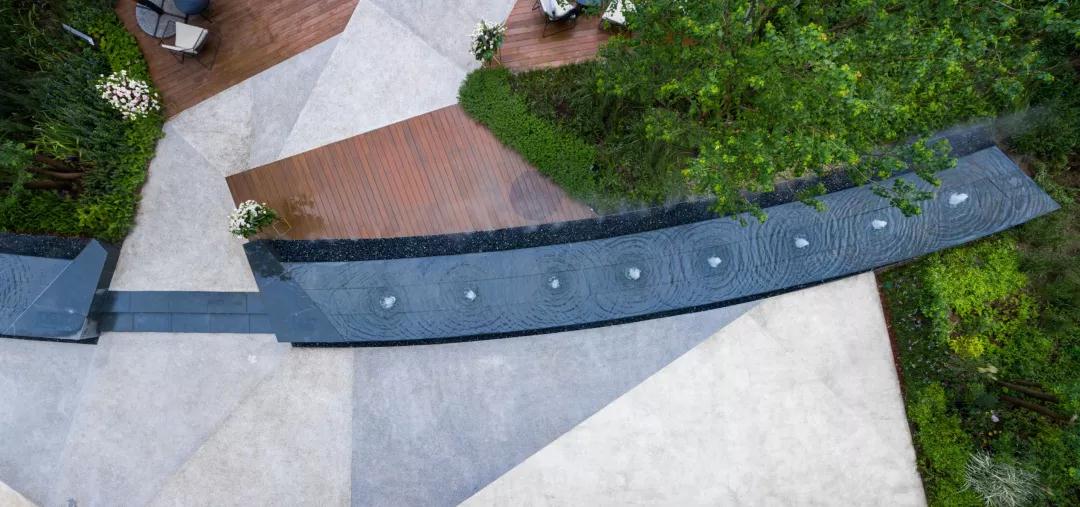 不论是屋顶、地面的硬质铺装还是花坛水系喷出的波纹,都是如此