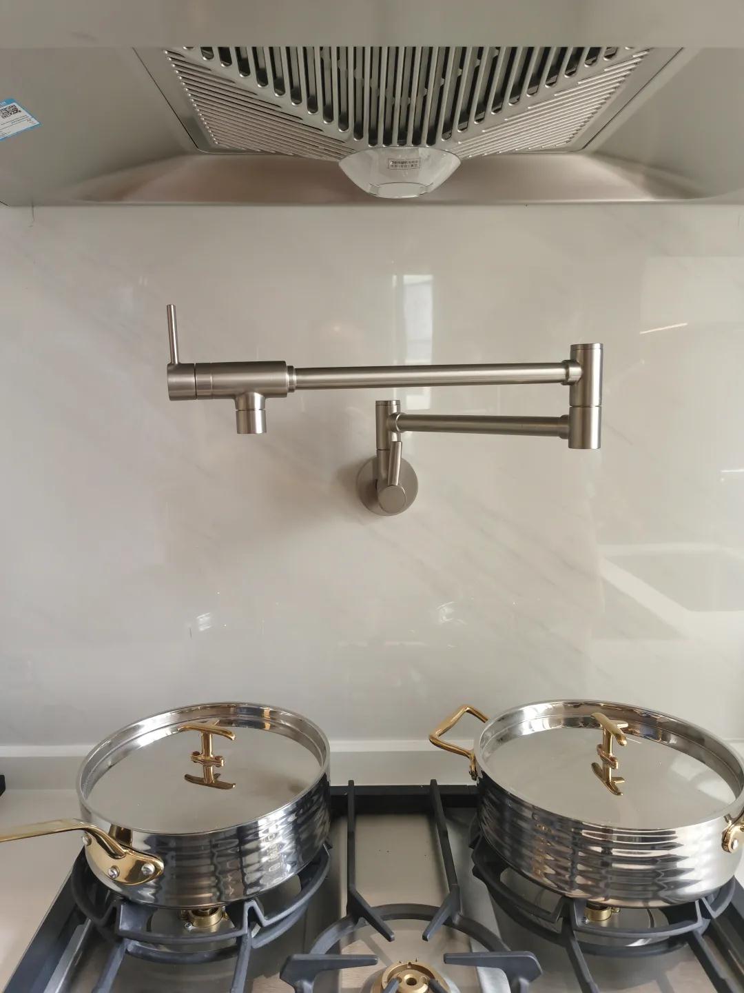 厨房里为方便做饭,专门配备了一个折臂龙头,使用起来极其方便,看过那么多项目,这种配置还真是少见