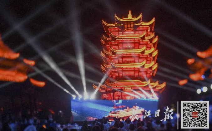 (黄鹤楼光影展。记者周超 摄)