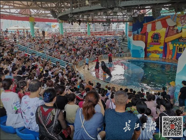 下午3时许,长江日报记者抵达东湖海洋乐园,只见不少家长带着孩子前来游玩。“赶着暑假最后几天,带孩子来放松放松,正巧碰上了优惠活动,真不错。”汉口居民张先生携妻儿一同来到东湖海洋乐园游玩,遇上金边健康码优惠的活动,便宜了不少,“孩子在飞鸟世界和鹦鹉对话了很久,也在魔兽城堡看到了很多从没见过的小动物,他闹着说下次还来呢!”