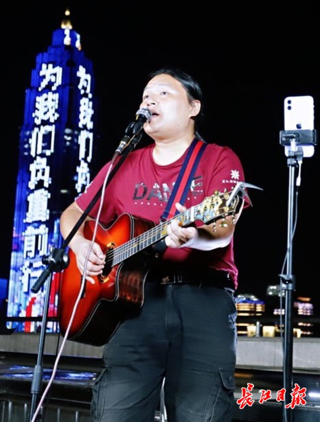 长江日报大武汉客户端9月4日讯 江水汤汤,微风徐徐,游船在璀璨的长江夜色中缓缓行进……9月3日晚,长江日报“可视电台”在汉口江滩横渡长江博物馆顶楼开播第四天,邀请了武汉独立唱作人仲立、吉他手余永黎来到直播间。他们现场演唱为武汉创作的歌曲《小巷》《昙华林》,网友直呼“太好听”。