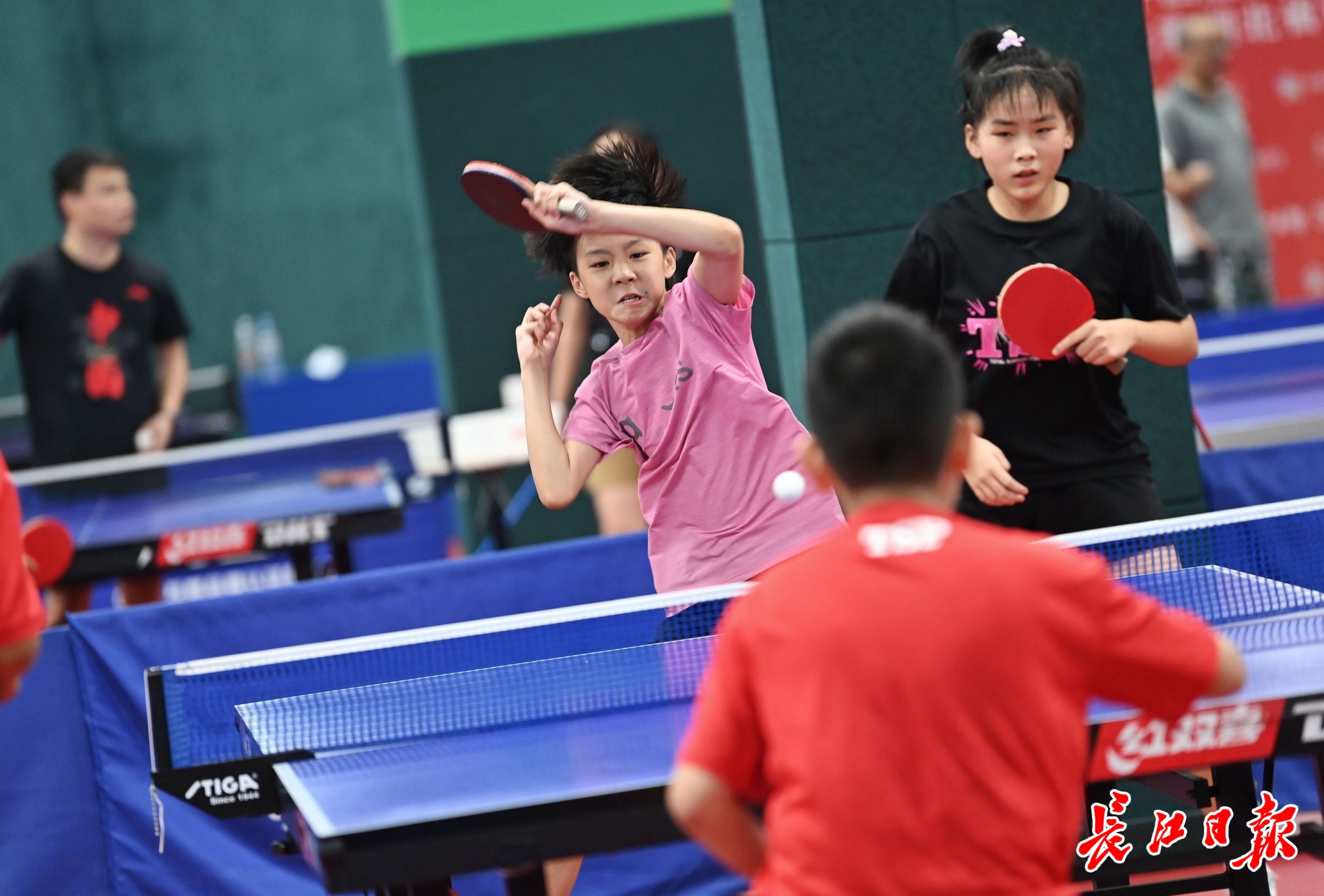 武汉全民健身中心乒乓球馆,培训中的青少年。记者郭良朔 摄