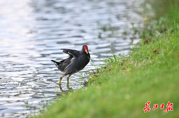 随着城市环境的不断改善,黑水鸡这类野生水禽越来越多的出现在武汉的城中湖内,市民也更容易邂逅这些小精灵。