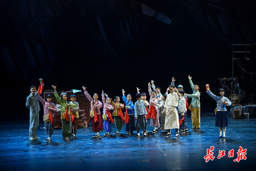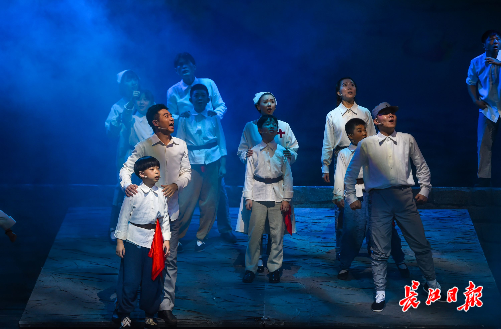 长江日报大武汉客户端9月8日讯(记者万旭明 通讯员蒋艳丽)8日晚,根据中国第一支少年抗日戏剧团体“孩子剧团”历史改编的红色题材儿童剧《孩子剧团》在琴台大剧院首演。当92岁的老团员铿锵有力地唱出当年的歌谣,当一群小学生演绎出80余年前同龄人的英雄故事,当5岁半的小观众按捺不住站起来拍红了巴掌,著名演员周锦堂再也遏制不住内心的激动,高声说道“这就是中华民族的精神!这就是中华民族的脊梁!”