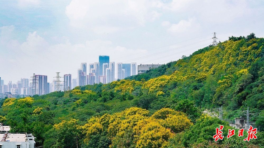 从长江大桥上看龟山上的栾树花海。肖茗予 摄