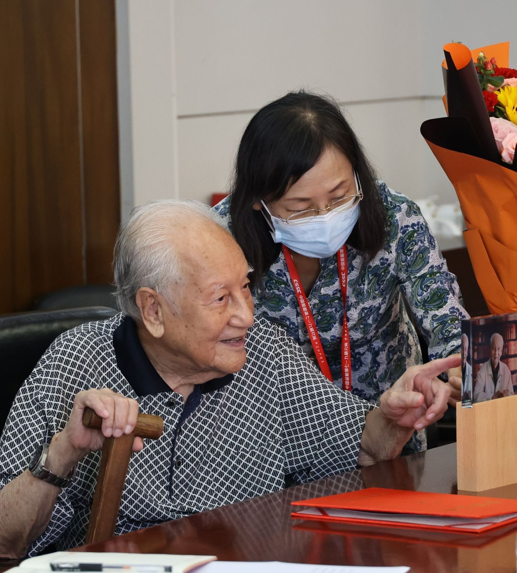 虽然已经95岁高龄,但黄旭华院士(左)思维清晰、身体康健。 通讯员黄梦云 摄
