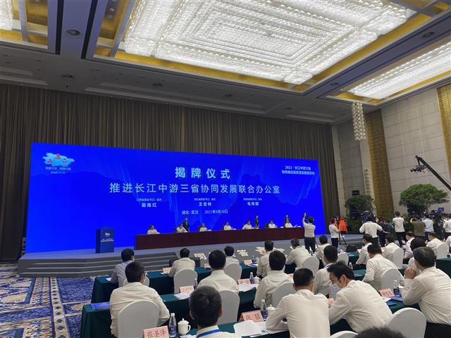 9月10日,在2021·长江中游三省协同推动高质量发展座谈会上,长江中游三省协同发展联合办公室揭牌成立。联合办公室的成立,标志着三省省际协商工作机制进一步完善,三省合作联系更为紧密。