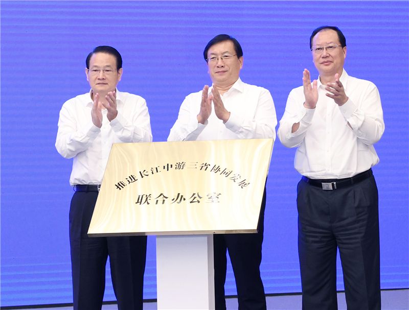 江西省委副书记、省长易炼红,湖南省委副书记、省长毛伟明,湖北省委副书记、省长王忠林出席会议,并为“推进长江中游三省协同发展联合办公室”揭牌。王忠林主持会议。
