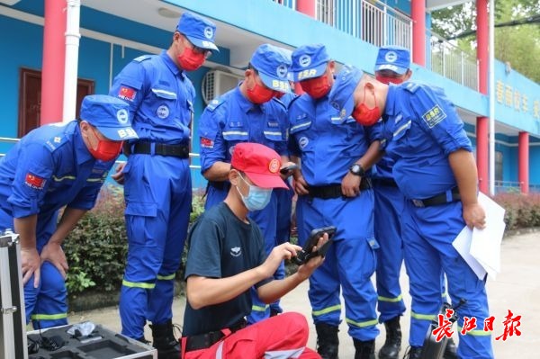 长江日报大武汉客户端9月10日讯(见习记者魏旭平)9月10日下午,位于东湖高新区九峰街道的武汉蓝天救援队基地正在开展生命探测仪使用培训,几名队员将雷达生命探测仪摆放在空地,操作手持显示器,仅用10秒就找到20米外的“受困人员”。