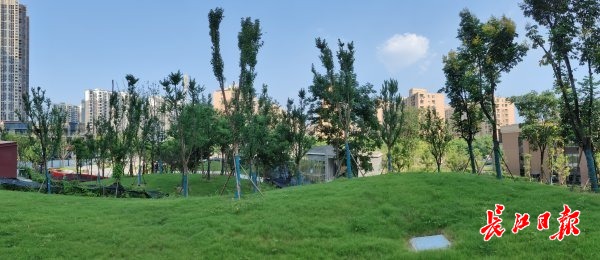 在这个口袋公园项目现场,只见昔日杂草丛生的土丘披上了油绿均匀的草皮,180余棵香樟、银杏、三角枫等乔木扎根其上,石阶路面蜿蜒于坡面,形成起伏缓和的休闲步道,“山顶”建起凉亭,轻风拂过,紫薇花枝摇曳。“山”下,文化广场、极限攀岩区、儿童沙坑、环园跑道等连成功能片区,也为公园增添了活泼的色彩。