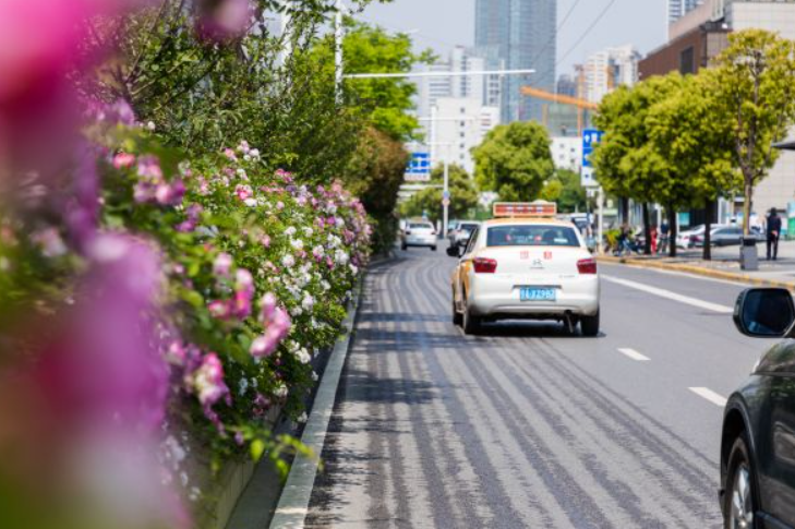 据了解,2016年中北路打造林荫路时,在沿线快车道与慢车道之间花坛栽植了开花灌木垂丝海棠和蔷薇。垂丝海棠每年3月中旬盛开,4月初海棠花尽,随后长约3公里的粉色蔷薇接力开放。