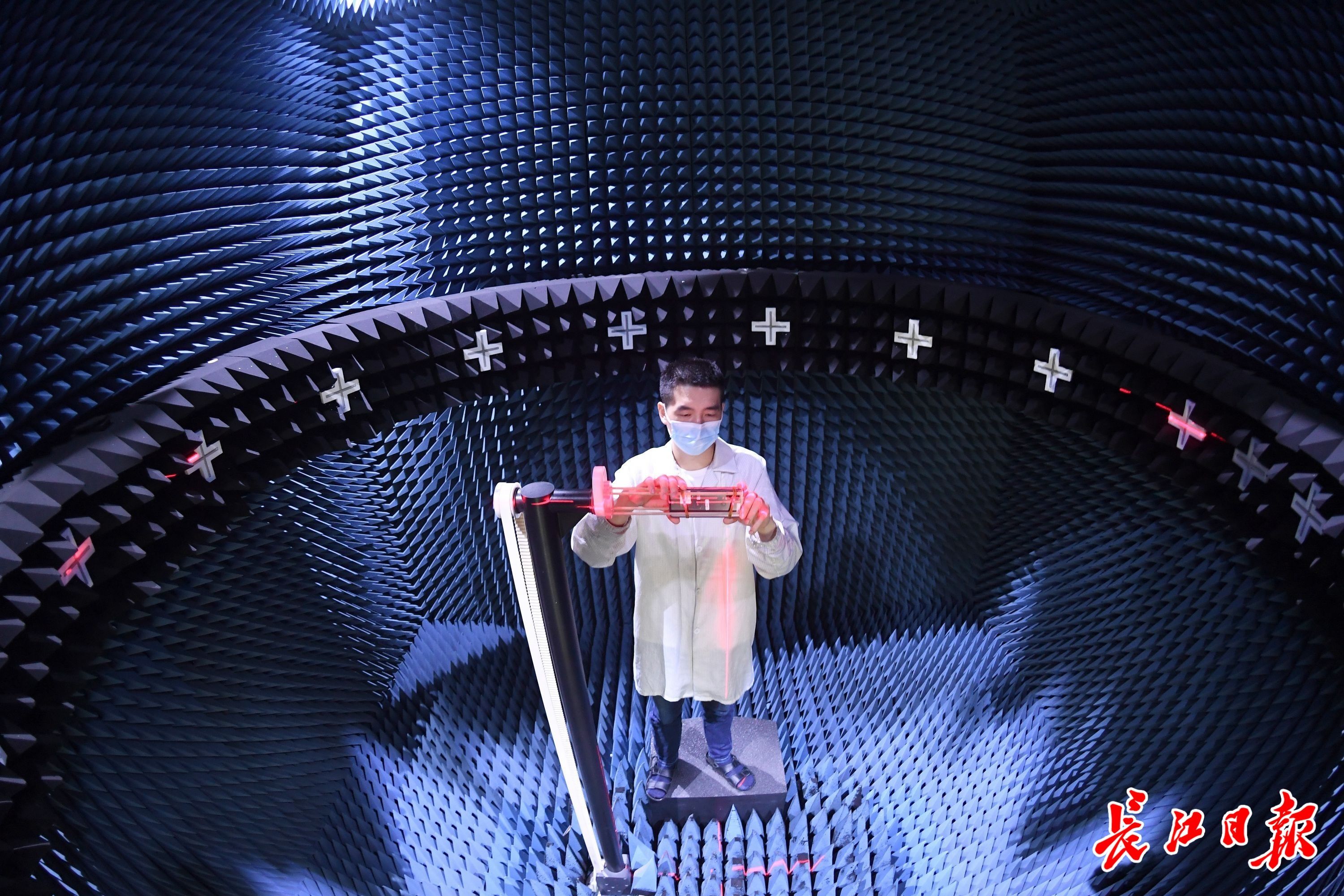 武汉锻造全产业链思维,让大企业和“小巨人”协同成长、互为生态。图为联想武汉基地工程师正在测试手机在不同情况下的信号接收性能。 记者周超 摄