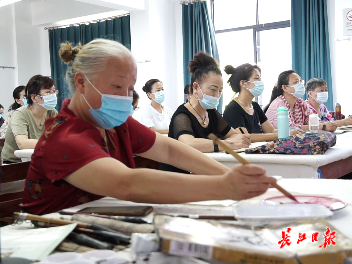 在油画班教室,一对高龄母女格外引人注意,61岁的田虹在武汉老年大学上学已经12年,由于84岁的老母亲患阿尔兹海默症,生活无法自理,从去年开始,田阿姨开始每天带着母亲上学。她坦言,这么多年下来,自己陆续学习了油画、书法、篆刻、吉他、扬琴等几十门课程,人生从一张白纸变得丰富多彩,如今到老年大学学习已成为生活中不可分割的一部分。母亲虽然思维不大清楚,但特别喜欢热闹,每次自己上课,老人就坐在教室一角做手工,心情也比以往开朗多了。