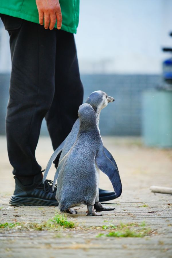 小企鹅和保育员在一起。彭少波 摄