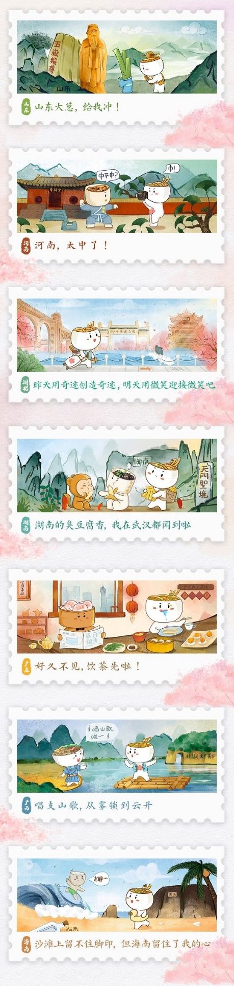 这一次,“热干面”成为了“健康大使”,为全国各地亲朋好友带来“健康社交”心愿:在陕西和兵马俑击掌问候,在山东和大葱一起参拜孔夫子雕像,到广东喝早茶,到湖南喂猴子……一个个场景让人感到有趣又温暖。全国用户可通过微信搜索“健康武汉官微”或“腾讯健康”小程序抽取电子健康卡皮肤,解锁“热干面”带来的健康祝福。