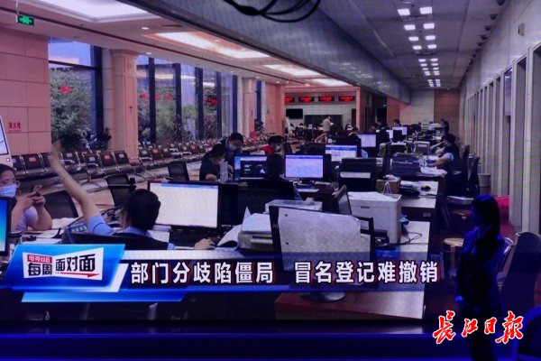 17日晚8点30分,由武汉市治庸问责办主办、武汉广播电视台承办的全媒体监督类栏目《电视问政:每周面对面》播出问题短片《短片部门分歧陷僵局 冒名登记难撤销》。
