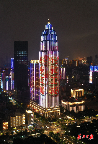 在两江游览“古琴台号”游船上,记者看到,夜幕下的两江四岸因光影而变得更加璀璨,长江二桥、武汉绿地中心、龟山电视塔等标志性城市建筑上浮现“中秋快乐,万家团圆”“但愿人长久,千里共婵娟”“祝福祖国繁荣昌盛”“月满中秋,乐享江城”等文字。