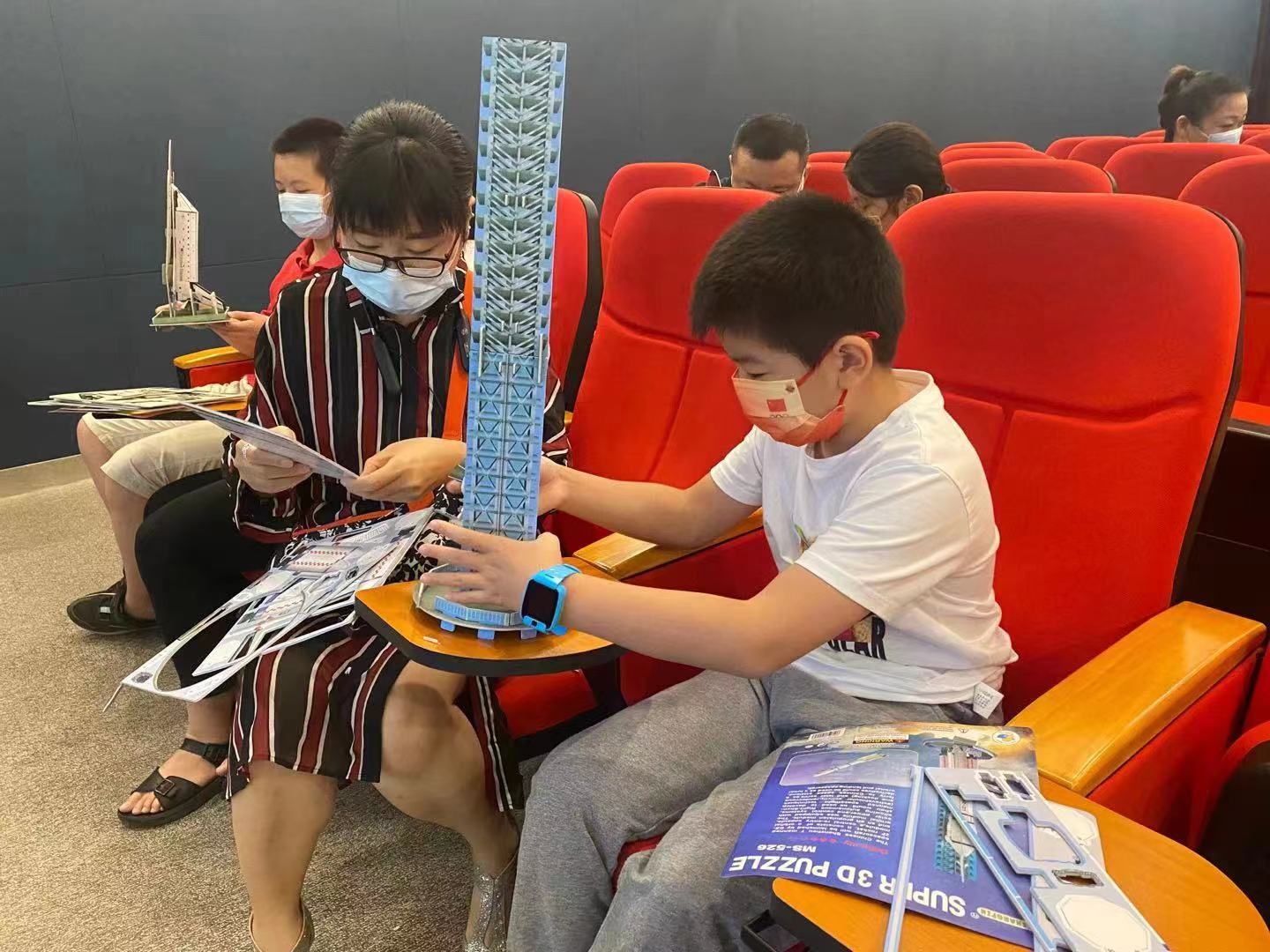 家长和孩子一起制作模型。通讯员供图