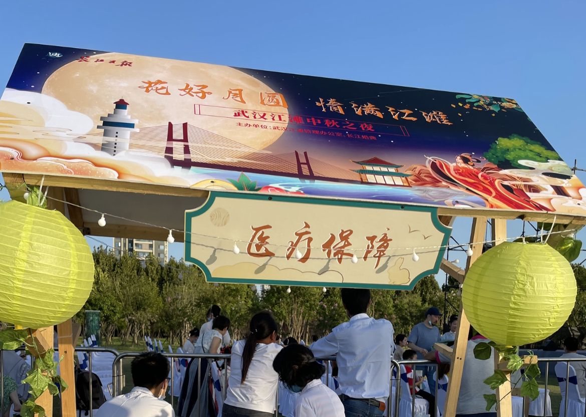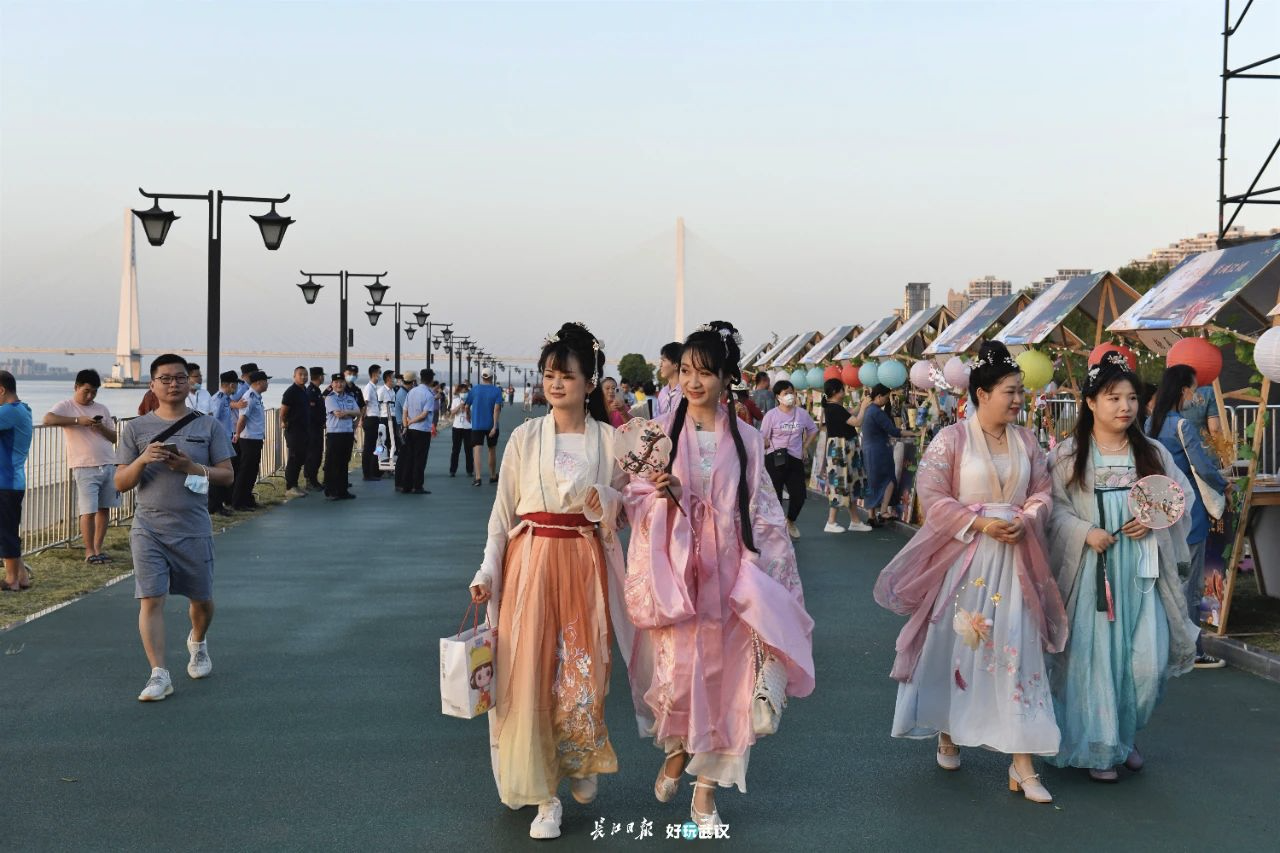 活动现场,团圆集市有多位非遗传人表演技艺,独弦琴表演、香包、脸谱、软陶、糖画、面塑、汉绣等吸引了很多市民打卡。百余位汉服爱好者穿着各式汉服齐聚江滩,成为独特风景。现场医疗保障由武汉京都结石医院提供,中秋特色茶歇由武汉会议中心提供。伊利集团、芙丝天然矿泉水为活动提供了饮品。