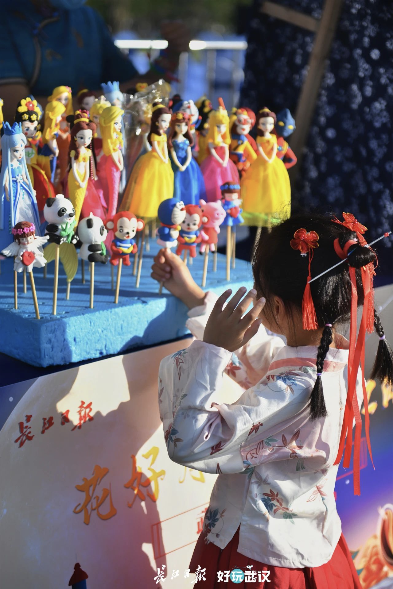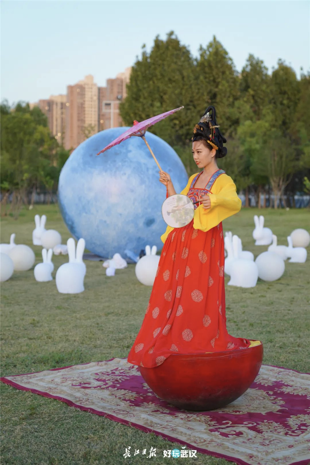 一女士带着侄女专程从汉口来到活动现场,小姑娘是一位汉服爱好者,看到各式各样的香包爱不释手。现场扮演嫦娥的小姐姐和她亲密互动,“我带了自己的小猫到场,还借给嫦娥姐姐当玉兔呢!”小姑娘非常开心,说在这里遇见“嫦娥”是中秋最开心的事。