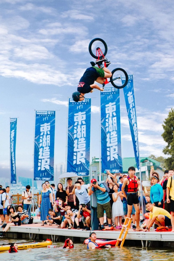 据武汉市青联委员江恒介绍,2021年,造浪节内容大升级。“在这里,不仅能观赏到最原生、最精彩的BMX跳湖,还有更多互动项目与打卡环节,等着每一位不甘夏天匆匆溜走的武汉人。”