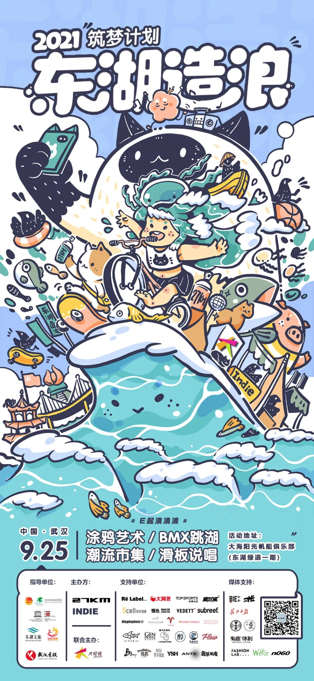 东湖造浪从来不止是一小群人的游戏,而是所有武汉人的惊涛骇浪。27KM联合武汉大悦城、RELABEL与慢半拍咖啡,在湖边搭起限时快闪店。一毛emo与家庭新成员一漾eon来到东湖边,还带来了许多只能在东湖造浪现场看到的周边产品。特别为活动推出的「跳东湖咖啡」,也绝对是造浪现场不可错过的新鲜味道。