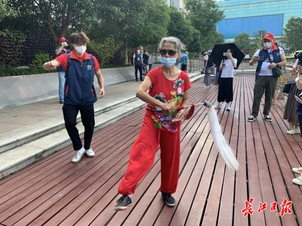 “阿姨,您跳的这个舞很好玩,能不能教教我。”在汉口西北湖绿化广场,看到有市民正在休闲锻炼,来自山东大学的台湾高雄学生刘品呈走上前与市民张菊华攀谈起来。“我这练的是拳,名字叫木兰拂尘,这个动作是芙蓉取水。”张菊华一边比划着,一边热情地讲解。刘品呈站在一旁,一板一眼地跟着学起来。大家纷纷举起相机、手机,定格一个个精彩瞬间。“武汉人挺热情。这次来武汉,我希望接触到更多的武汉市民,跟他们聊聊天,感受街头巷尾普通人的休闲时光,抓拍一些有趣的生活瞬间。”他说,自己将重点拍摄相关主题的照片、视频,并制作成Vlog进行传播。