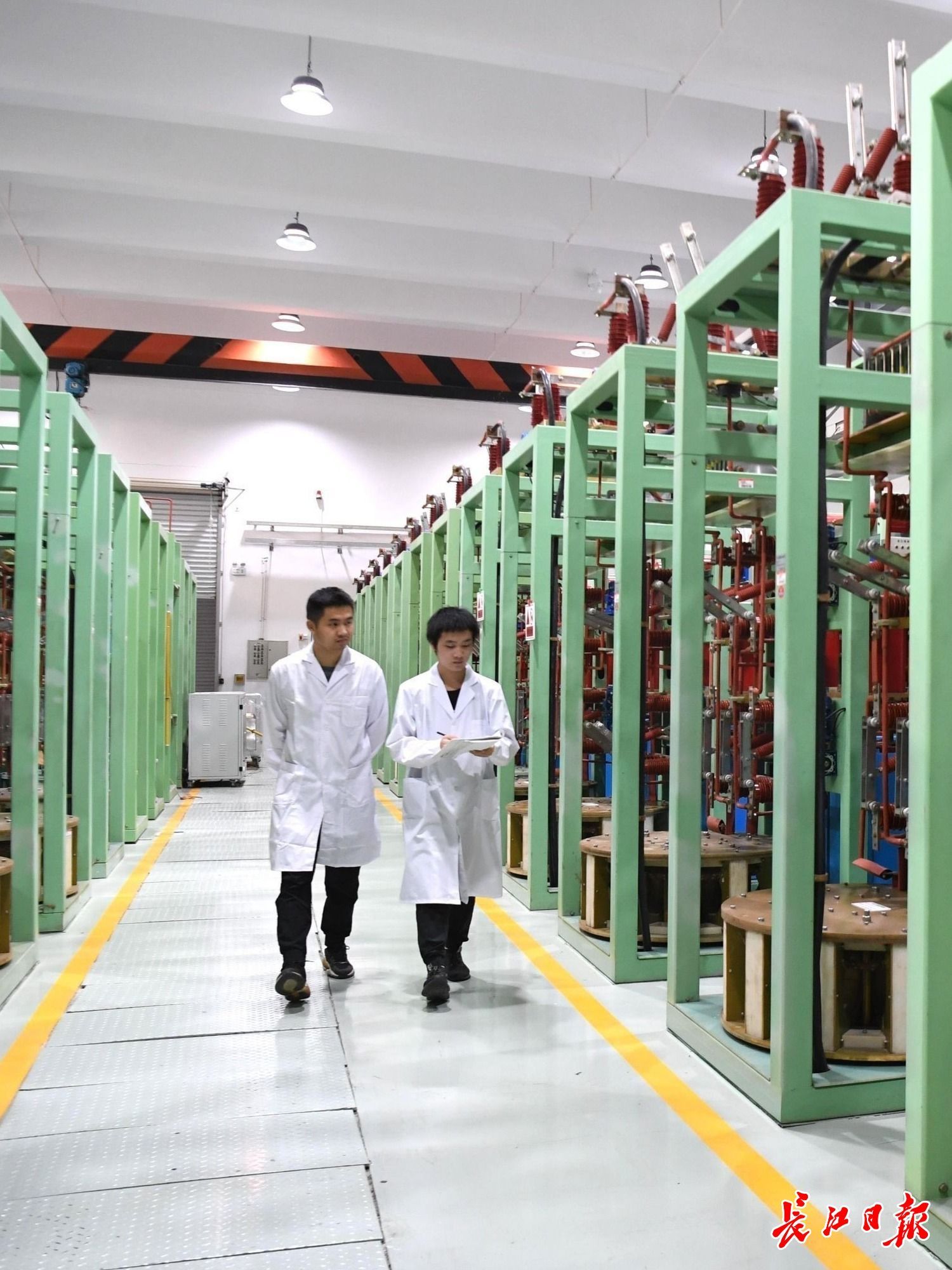 国家脉冲强磁场科学中心科研人员在电源大厅工作。长江日报记者高勇 摄