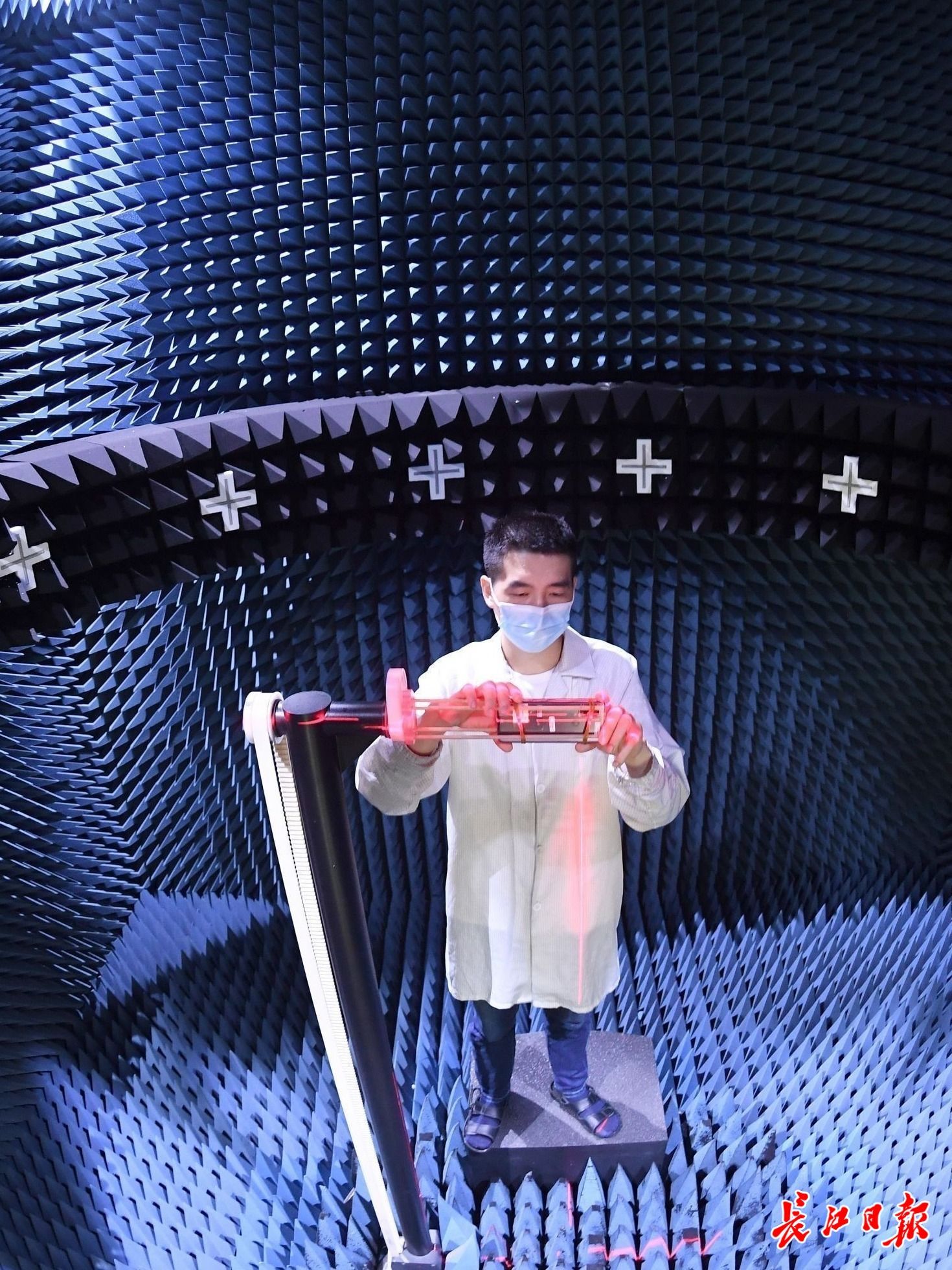 联想武汉基地工程师正在测试手机在不同情况下的信号接收性能。 长江日报记者周超 摄