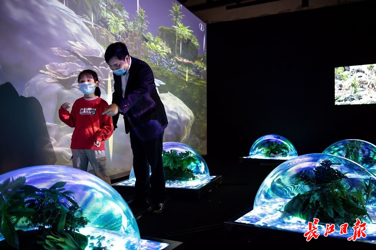 一名小朋友在《Tomorrow Wave 明日浪潮》艺术作品展参观。 长江日报记者任勇 摄