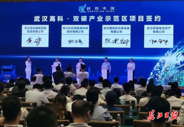 当天,在“科创中国”产学融合会议现场,武汉高科集团与武汉国创科光电装备、四川长虹新能源、武汉蔚能电池资产有限公司等企业举行了武汉高科·双碳产业示范区项目签约入驻仪式,涵盖总部经济、新能源、智能制造等多个产业领域。