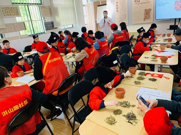 叶开泰传统中药制剂法走进校园,小中医端午节学做香囊。(资料图) 叶开泰供图