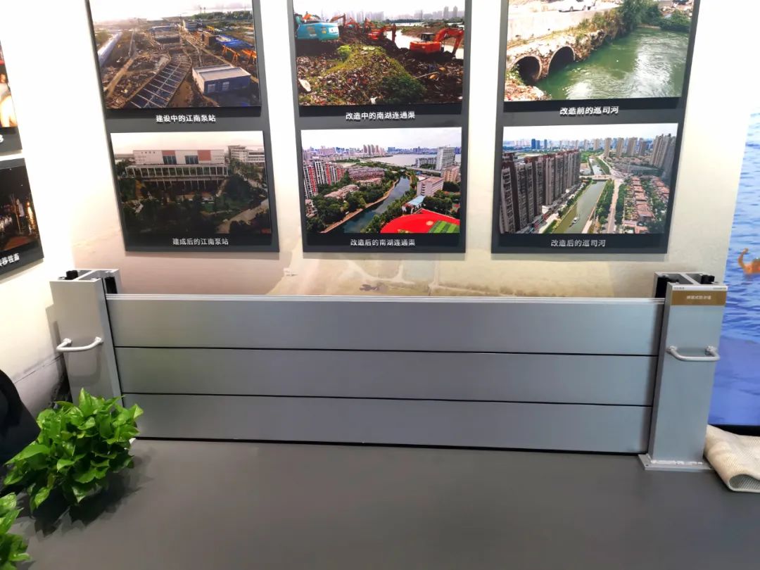 陈展现场展出了铝合金材质的拼装式防洪墙