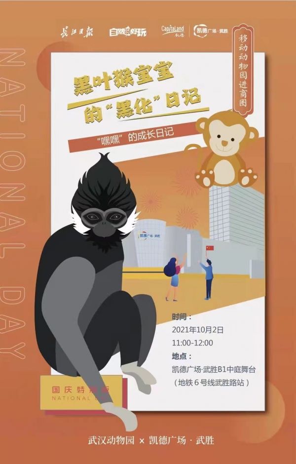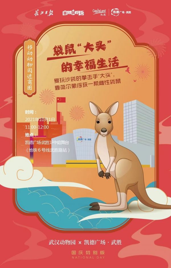 长江日报大武汉客户端9月27日讯 (记者郭可滢 通讯员陈立云)你知道袋鼠靠什么吸引雌性,黑叶猴为什么会“黑化”、火烈鸟为什么这么红吗?国庆假期期间,移动动物园连开三场,1日至3日,由武汉动物园主办的“移动动物园进地标”系列活动将走进商圈——武胜路凯德广场,带上娃,听饲养员与你近距离分享动物们的那些“爆梗”段子。