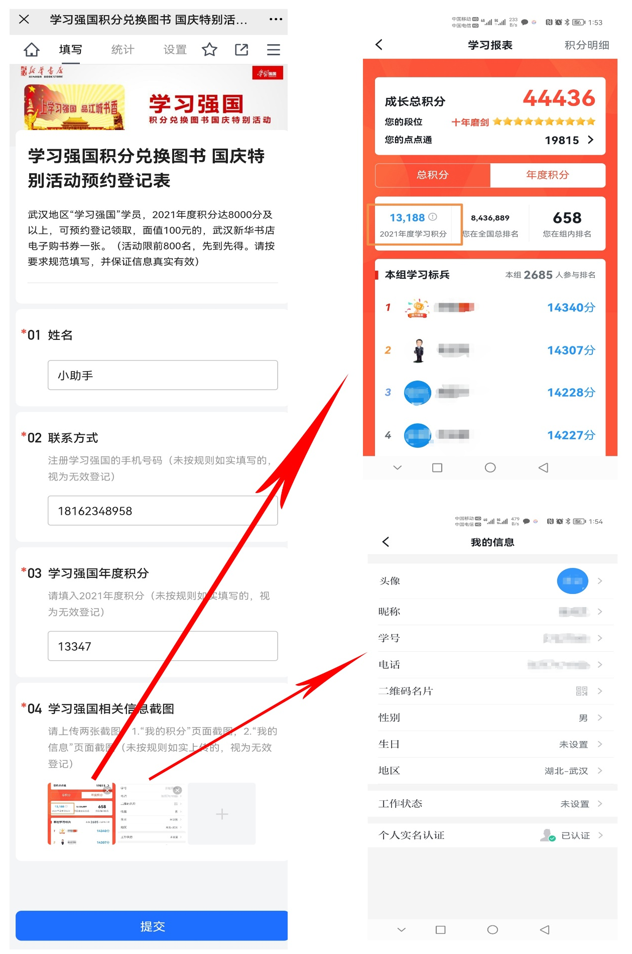 10月12日上午10时,“上学习强国 品江城书香”组织群及武汉新华书店微信订阅号、服务号发布登记信息核验成功的前800名“学习先锋”名单(姓名隐去姓氏、电话号码隐去中间4位)。