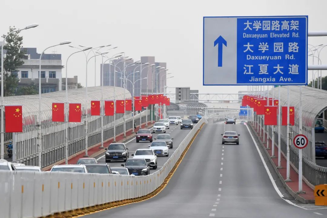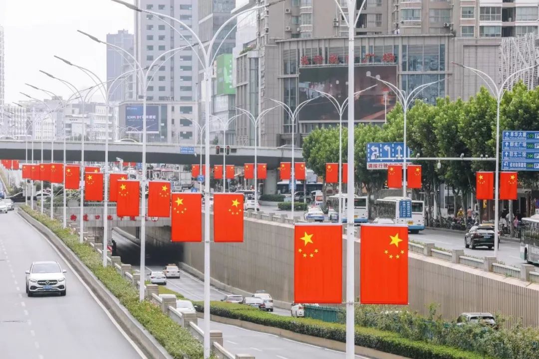 换乘通道等处挂上了国旗