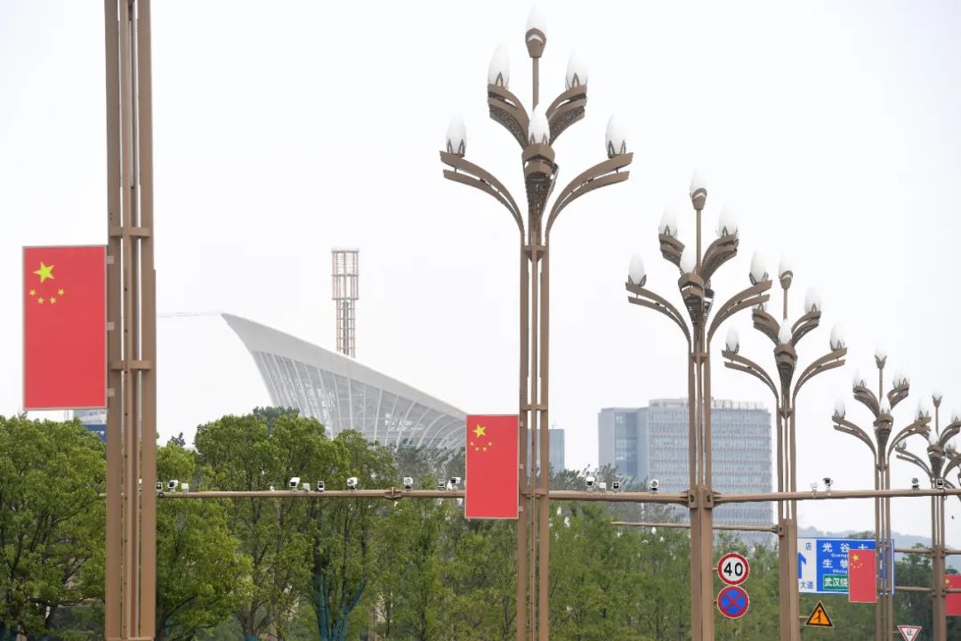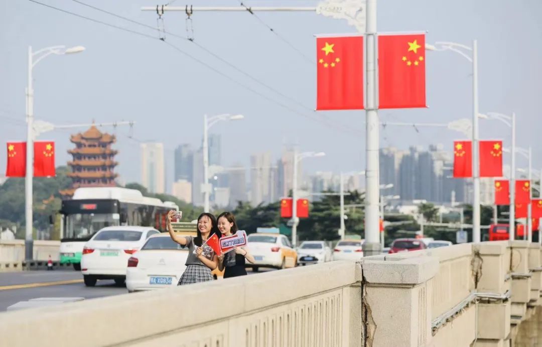 武汉的街头也都穿上了“中国红”的新装
